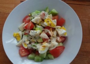 Try keeping some organic, free-range eggs pre boiled in the fridge, ready to finely chop and add into a salad. Or go mediterranean, and have an egg salad for breakfast!